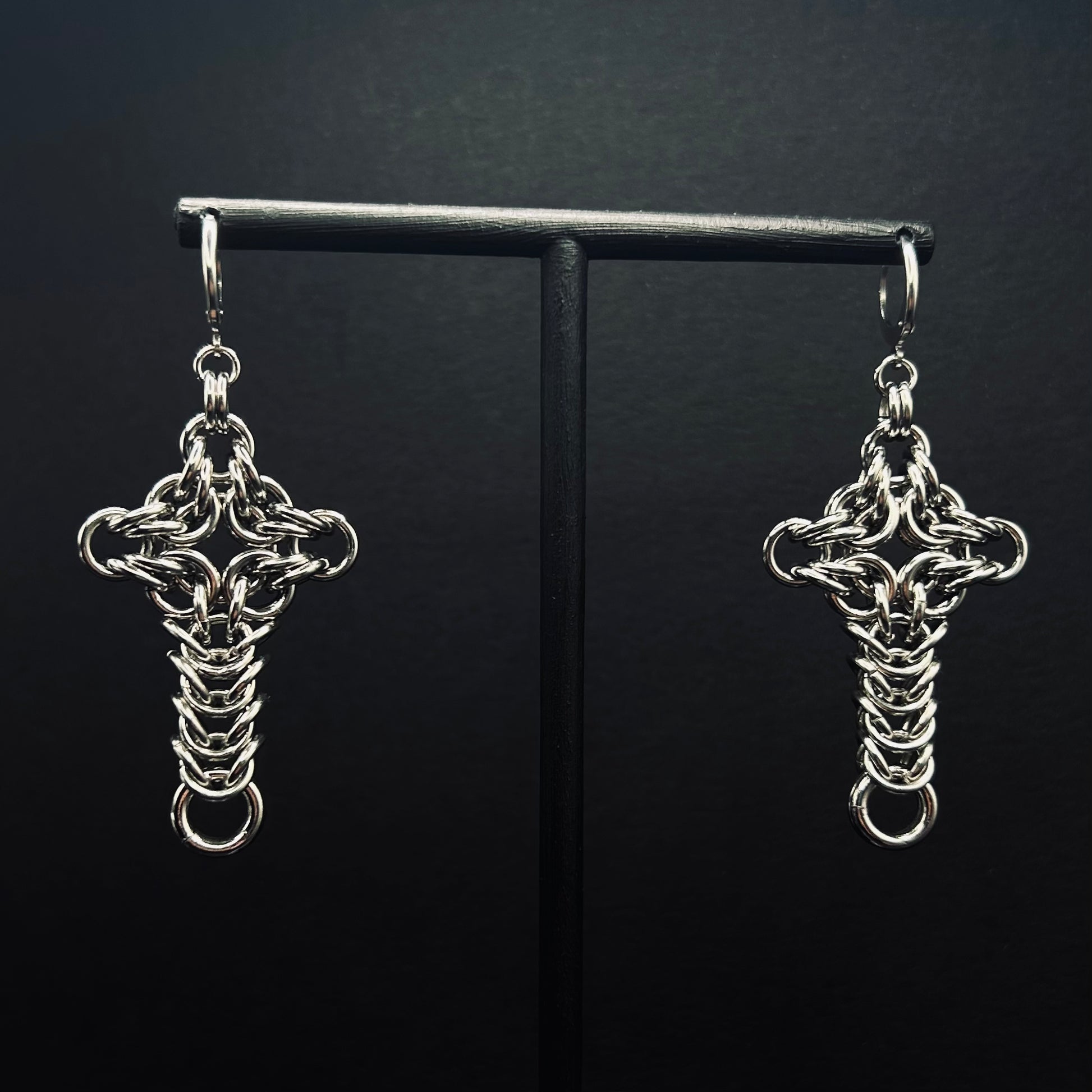 Handmade chainmail cross earrings