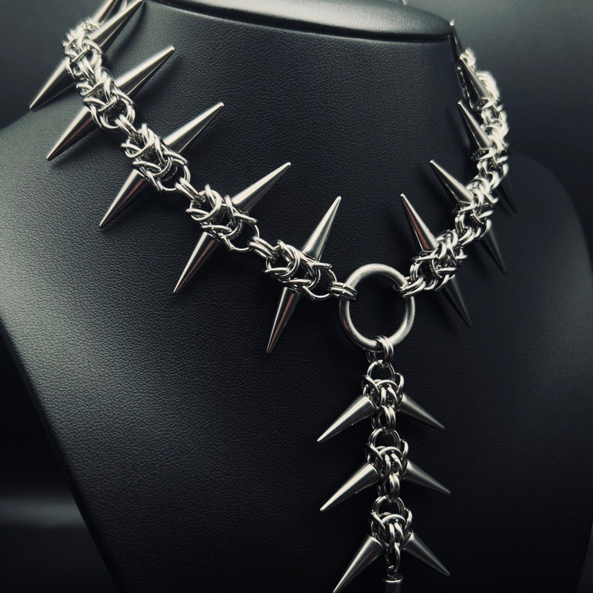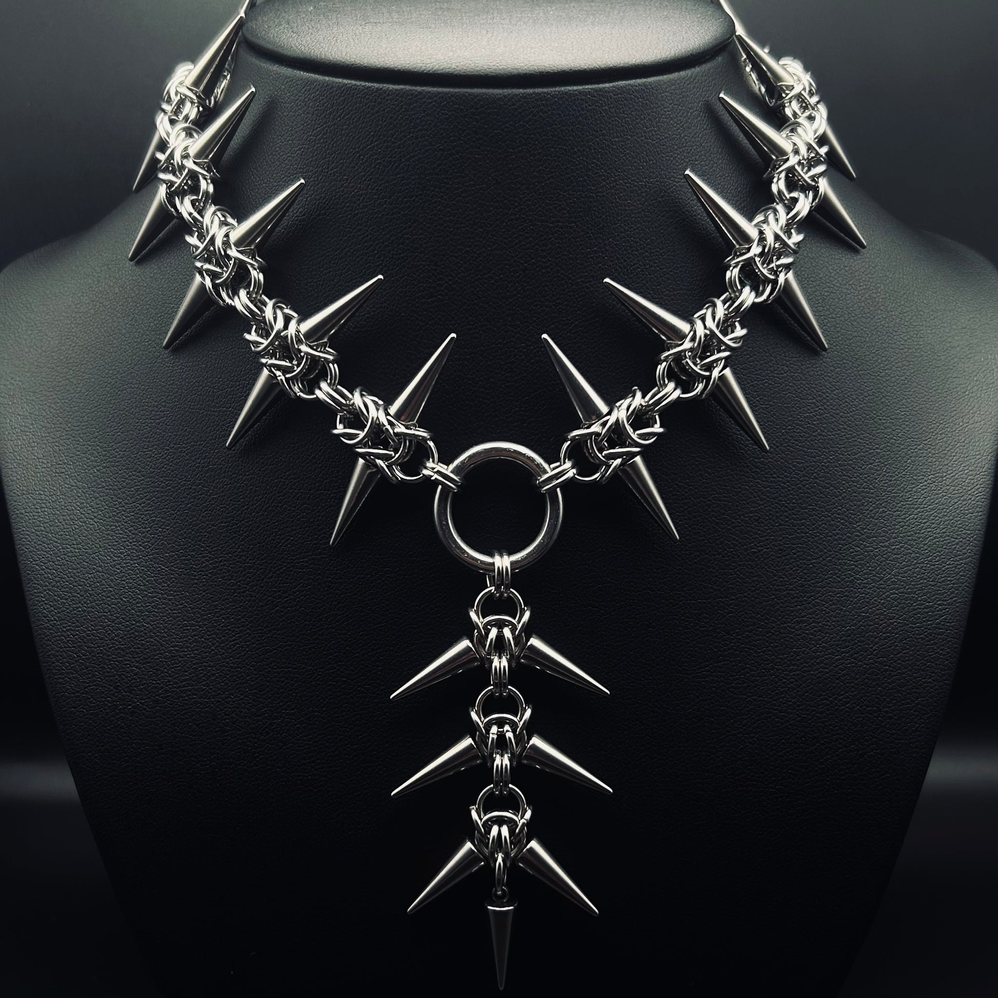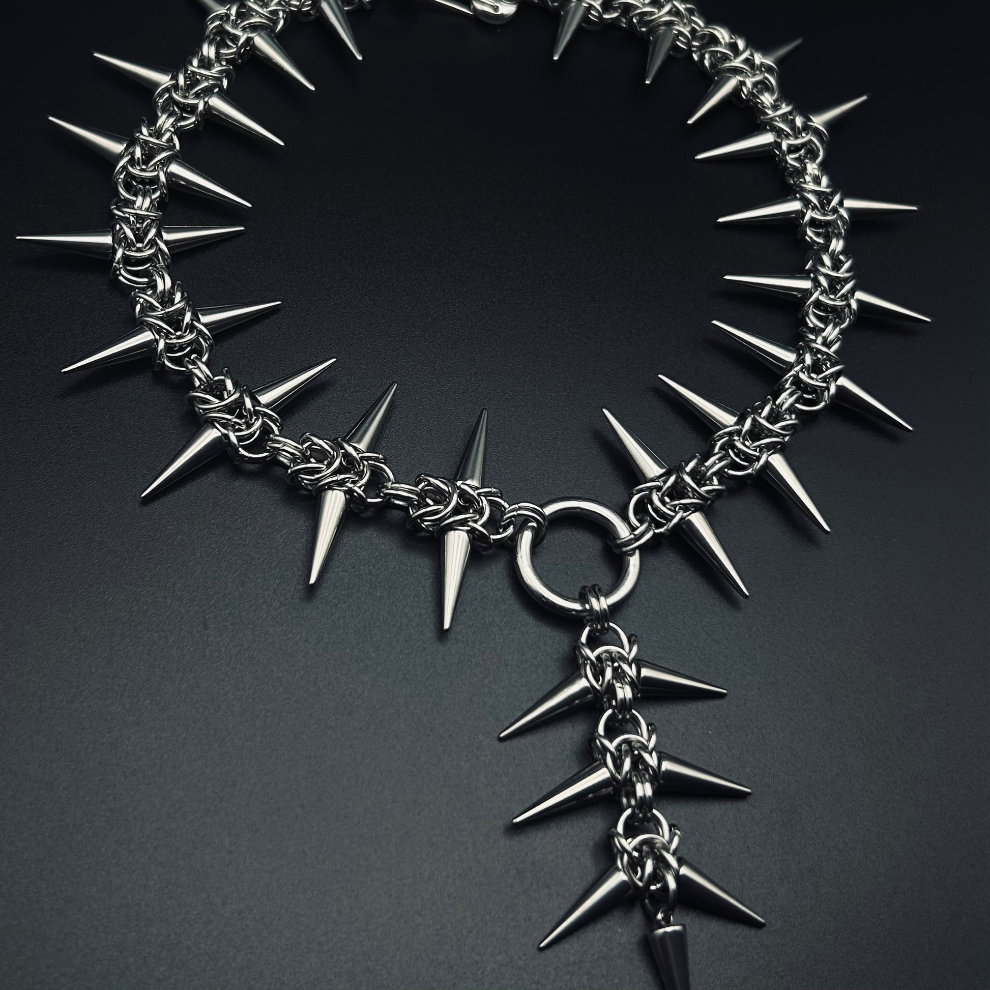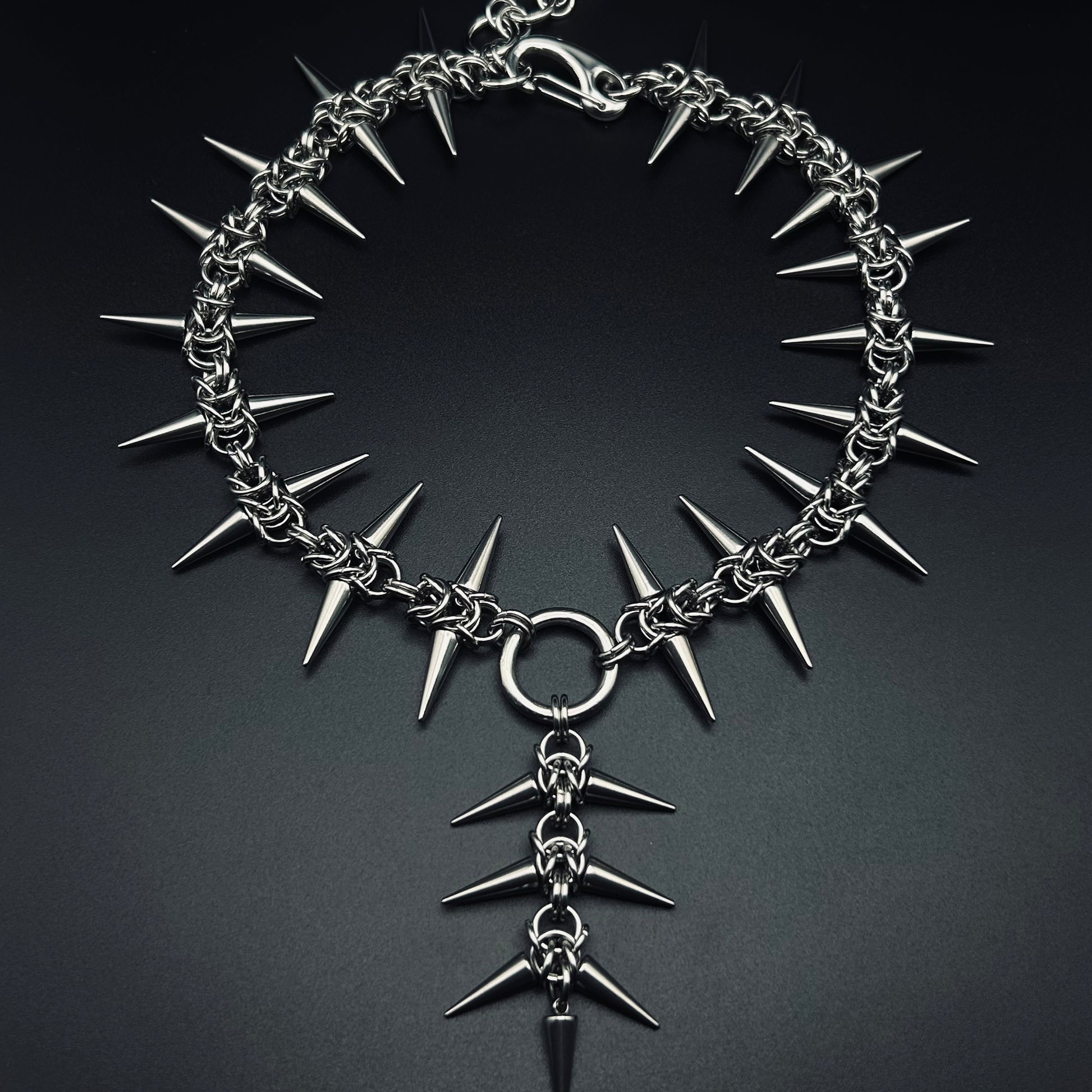 Handmade chainmail spiked necklace